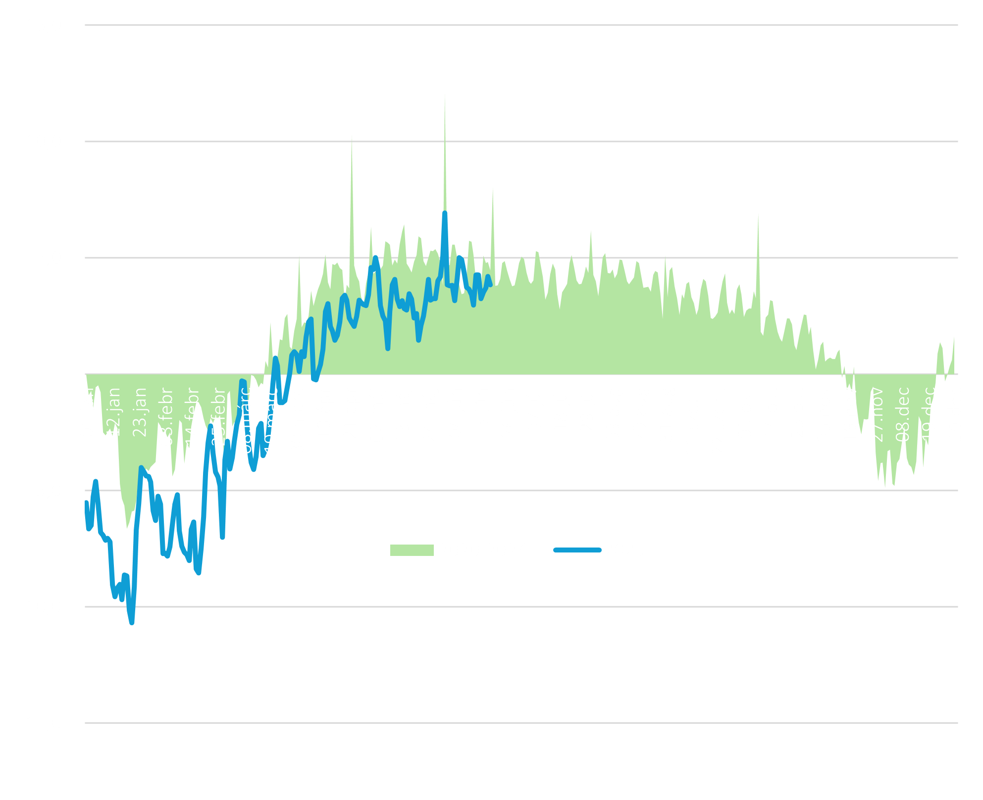- Az emelkedő front week árak hátterében meteorológiai tényezők állnak. A vízerőművek teljesítménye jelenleg körülbelül 2 gigawattal marad el az átlagtól.