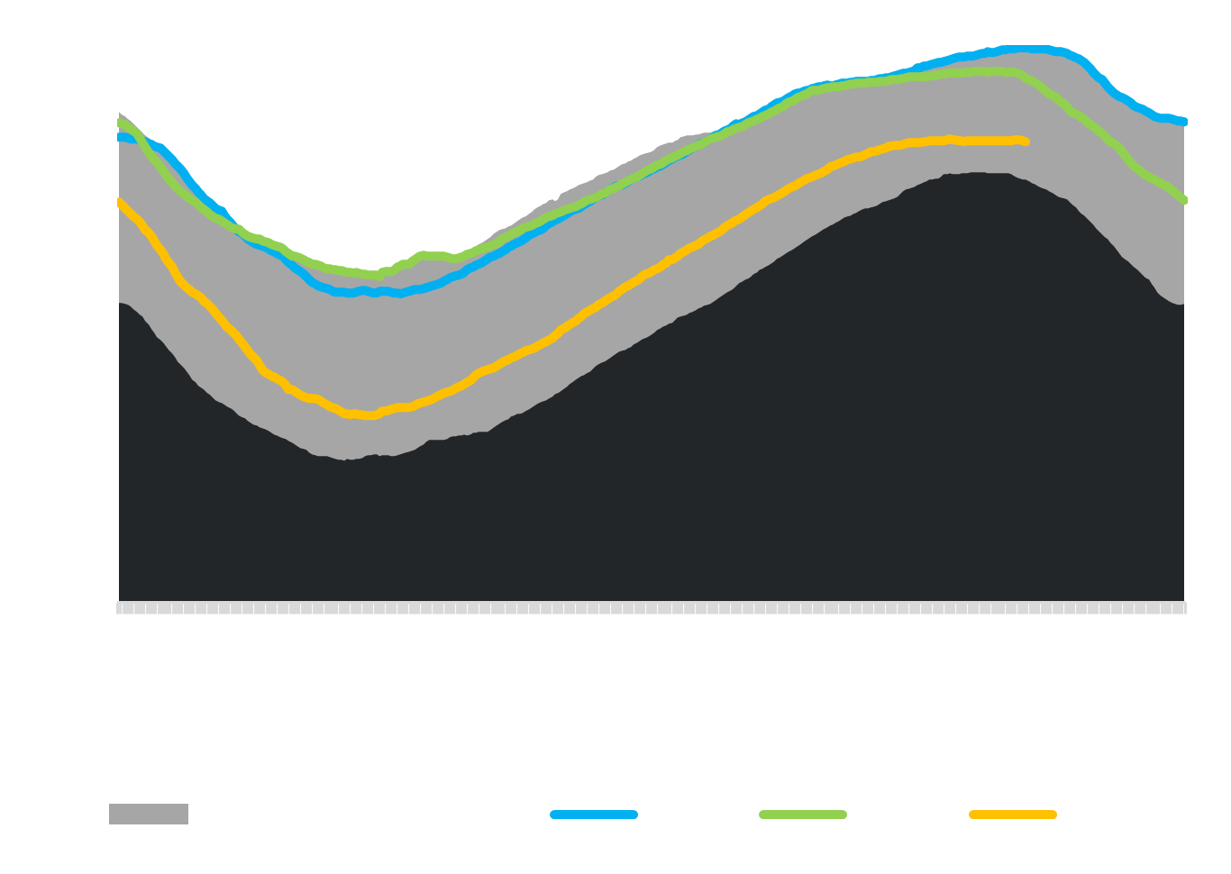 Források: Montel Analytics, AGSI, MAVIR, HUPX, HUDEX, Európai Központi Bank, Központi Statisztikai Hivatal, Magyar Nemzeti Bank, Bruegel.org, ENTSOG, Bloomberg.