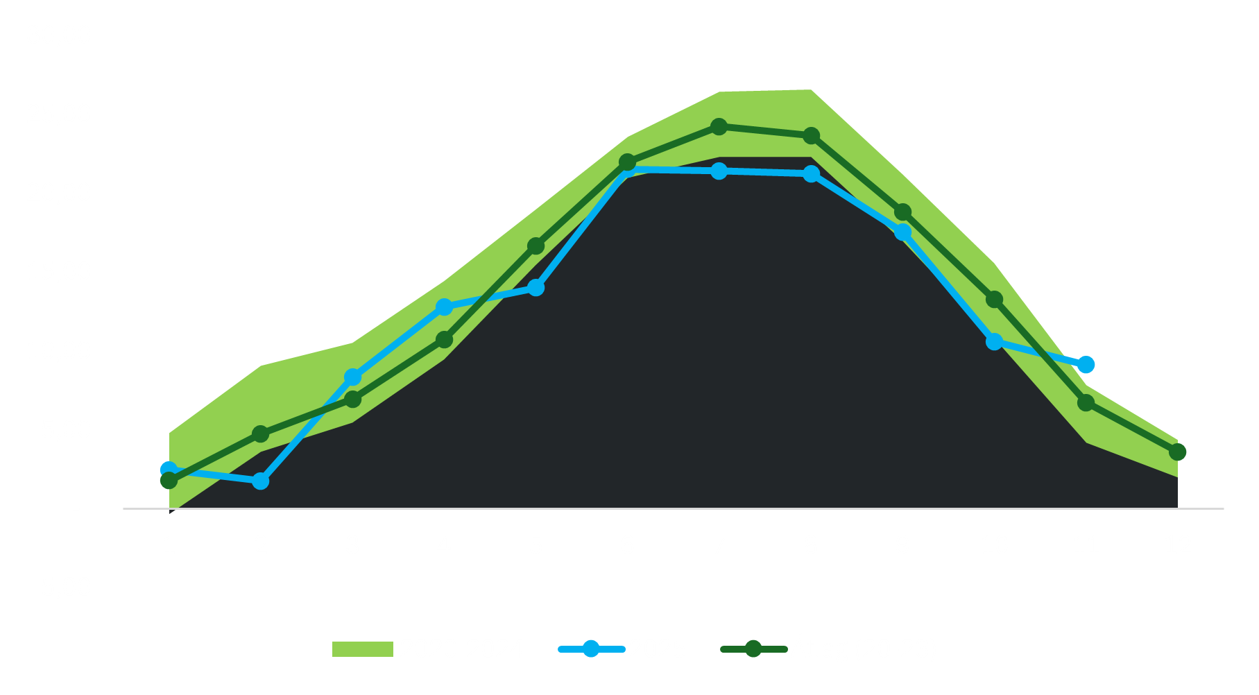 - A csapadékosabb időjárás ugyanakkor 0,7 GW-tal 4,5 GW-ra növelte a vízerőművi termelést, ami némi enyhülést hozott a magyar front-week szerződés árában.