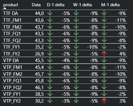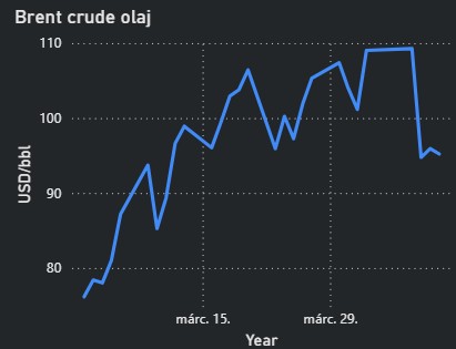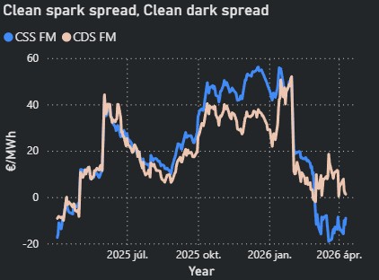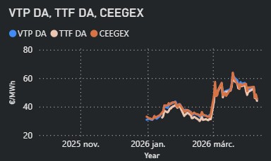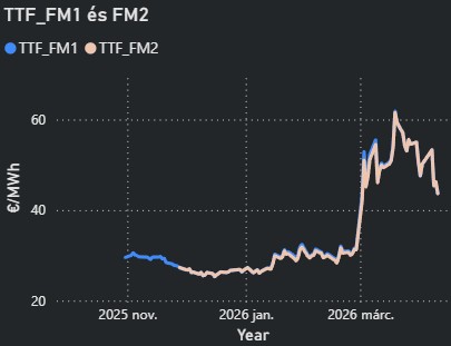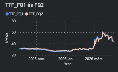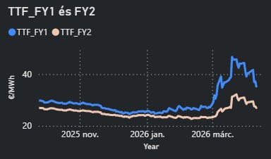 - A TTF árak szerdán jelentős, 15%-os mínuszban zárták a napot az iráni-amerikai tűzszünet hatására. Az árszint a hét további napjain volatilitás mellett fennmaradt.