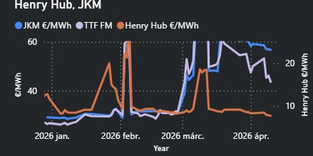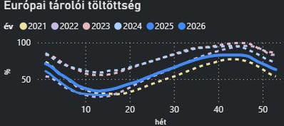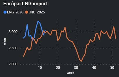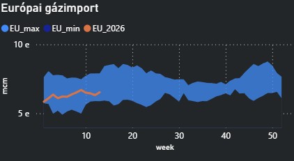 - Jelentős a kockázata annak, hogy a Perzsa-öbölből származó LNG szállítások nem állnak helyre az európai betárolási szezon végéig. Ez azt eredményezheti, hogy Európának a nyár és a kora ősz folyamán élesebb versenybe kell szállnia Ázsiával az LNG mennyiségekért, ami akár 100 euró/MWh körüli vagy azt meghaladó árakat is eredményezhet.