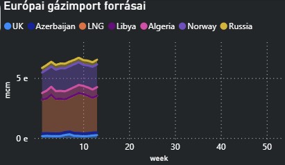 - Magyarország gázimportja 12%-kal, 2,9 milliárd köbméterre emelkedett az első negyedévben, mivel a hideg időjárás növelte a keresletet.