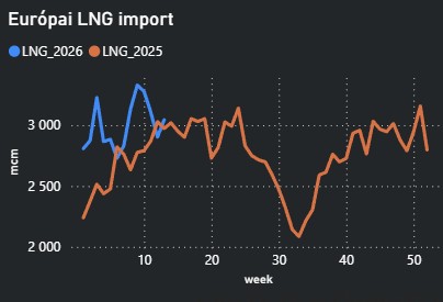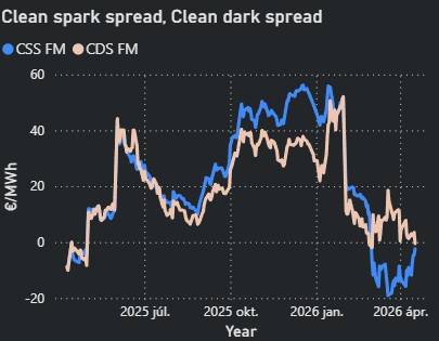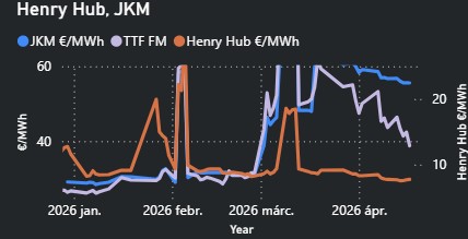 - Az európai áramár-volatilitás várhatóan tartósan magas marad. A szakértők szerint továbbra is a gáz a legfontosabb mozgatórugó, miközben az időjárási kockázatok még nagyobb kilengéseket okozhatnak a nyáron. Egy esetleges hőhullám, főleg Délkelet Európában, megemelheti az áramkeresletet a klímaberendezések miatt, miközben a nukleáris termelést visszafoghatja a gyengébb folyóvízi hűtés.