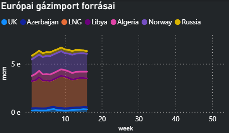 - Európába a múlt héten 3,08 milliárd köbméter LNG érkezett, ami 10%-os csökkenés az előző heti 3,43 milliárd köbméterhez képes. Az előzetes becslések szerint a szállítások ezen a héten további 13%-kal, 2,67 milliárd köbméterre eshetnek vissza, ami a legalacsonyabb heti szint tavaly szeptember óta.