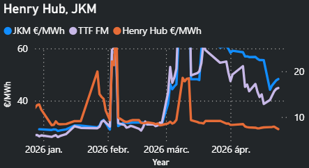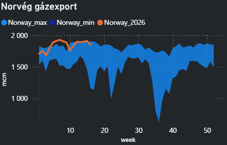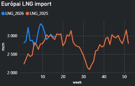 Eközben Katar North Field East projektje várhatóan egy évvel késik a QatarEnergy nyilatkozatai alapján, ami további mintegy 20 milliárd köbméterrel csökkentheti az LNG-kínálatot a 2026–2030 közötti időszakban.