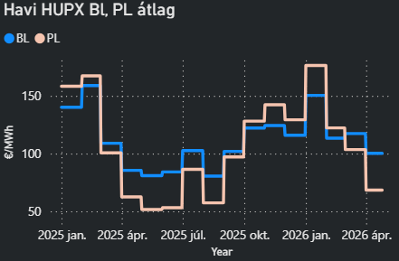 - A fő felfelé mutató kockázatot az időjárás és az ellátási zavarok jelentik. Egy gyenge vízerőműves szezon, váratlan erőmű-kiesések vagy egy korai júniusi hőhullám még okozhat árkiugrást. Jelenleg azonban a piaci vélemény az, hogy a fundamentumok erősebbek, mint a háborús hírek, még ha a gáz- és forward piacok továbbra is volatilisek.