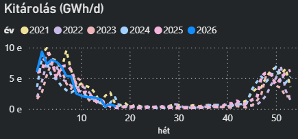 - A karbantartások a következő napokban mintegy napi 50 millió köbméteres kiesést okozhatnak, és június első hetéig napi 50–70 millió köbméter közötti hatással járhatnak.