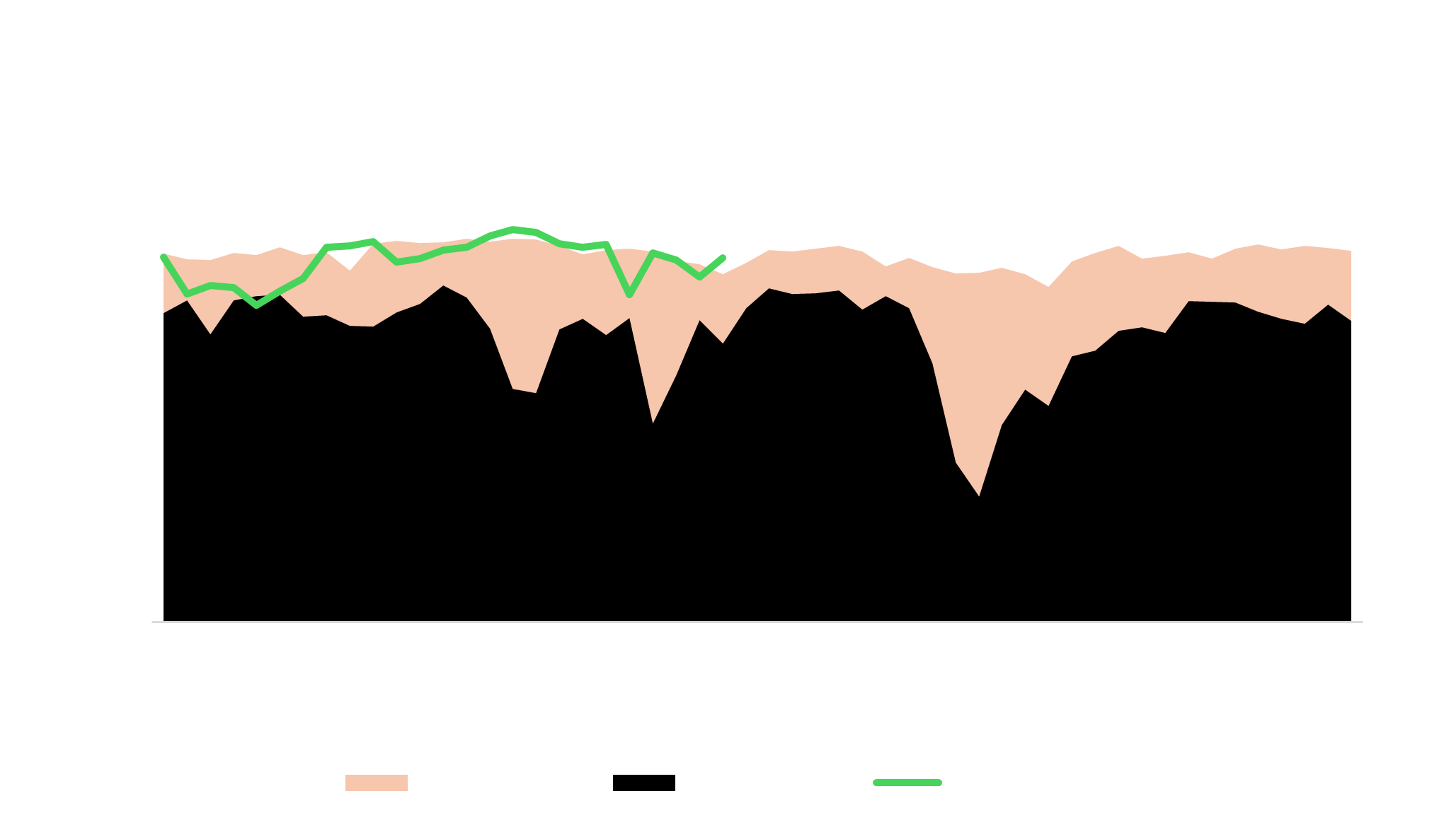 Hasonló a helyzet a norvég áramlással is. Ha 2021-2025 közötti maximum – minimum norvég exportot nézzük, azt láthatjuk, hogy a volumen közelít a maximumhoz.