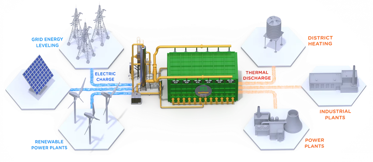 Francesco Venturini, az Enel X vezetője a beruházás kapcsán elmondta: „Az MGTES rendszer egy lépéssel előrébb viszi a tárolási ágazatot, mivel képes nagy hatékonyságot garantálni még a magas hőmérsékletet igénylő ipari folyamatok esetében is; mindez egy olasz technológiának köszönhetően, amelyet egy olasz beszállítói lánc támogat.”
