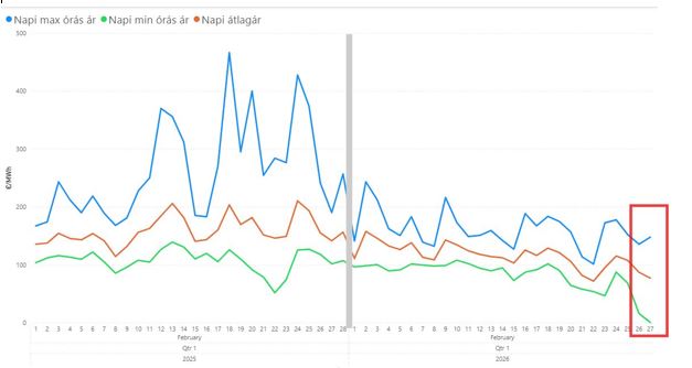 Tavaly március 8-án zárt először az év során 0 alatt egy HUPX órás ár.