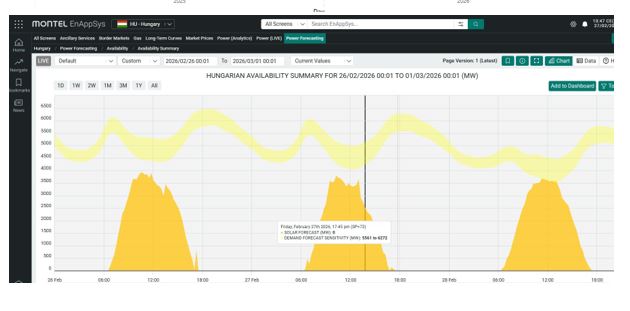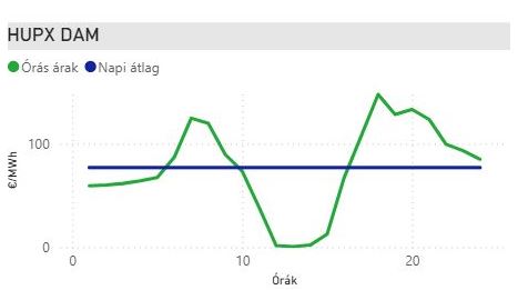 A HUPX árak pedig csökkennek. Péntekre közel 77 €/MWh, szombatra már 60 €/MWh alatti átlagár alakult ki a DAM piacon. A legalacsonyabb ár pénteken 0,44 €/MWh volt, szombaton pedig -0,18 €/MWh-ba fog kerülni a dél és 1 közötti fogyasztott áram.